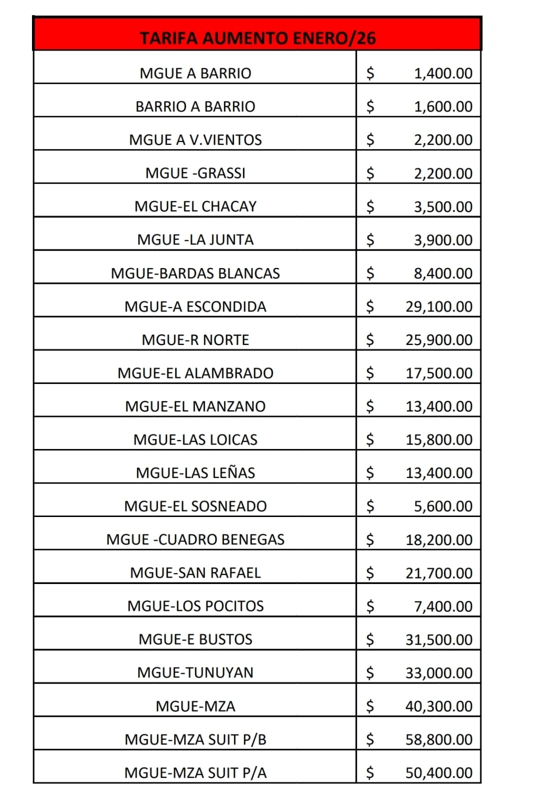 A modo de referencia, estos son los precios actualizados de la empresa CATA: