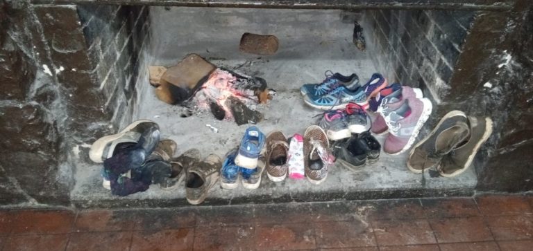 Posteriormente todos fueron alojados en el refugio de Vialidad Provincial y lejos de retirarse del lugar estos héroes sin capa siguieron ahí, al lado de los niños. Hasta incluso, como puede ver en la foto tomada por el uniformado de la policía de Mendoza José Luis Toledo, quien ha sido reconocido por su trabajo, les secaron las zapatillas en una estufa hogar. Además, debieron trasladar varias cosas desde la escuela hasta el Refugio, como mochilas, alimentos, abrigos, entre otras cosas.