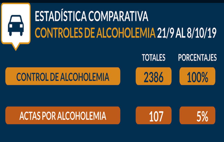Los números reflejan que en 18 días se labraron 168 actas viales por el consumo de alcohol al volante, de 2.386 controles de alcoholemia.