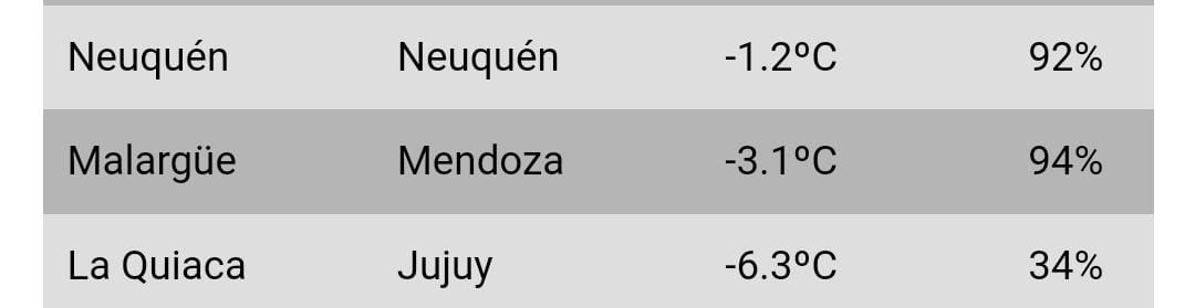 La ciudad de Malargüe amaneció con gélidas temperaturas, tal es así que se ubicó como la segunda ciudad más fría del país, con 3.1°C bajo cero.