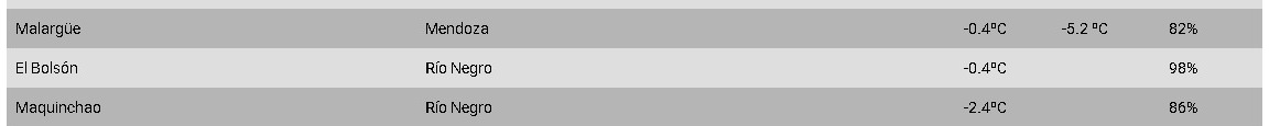 Con esta temperatura, Malargüe se ubica como la tercera ciudad más fría del país, ubicándose primera Maquinchao y segunda El Bolsón.