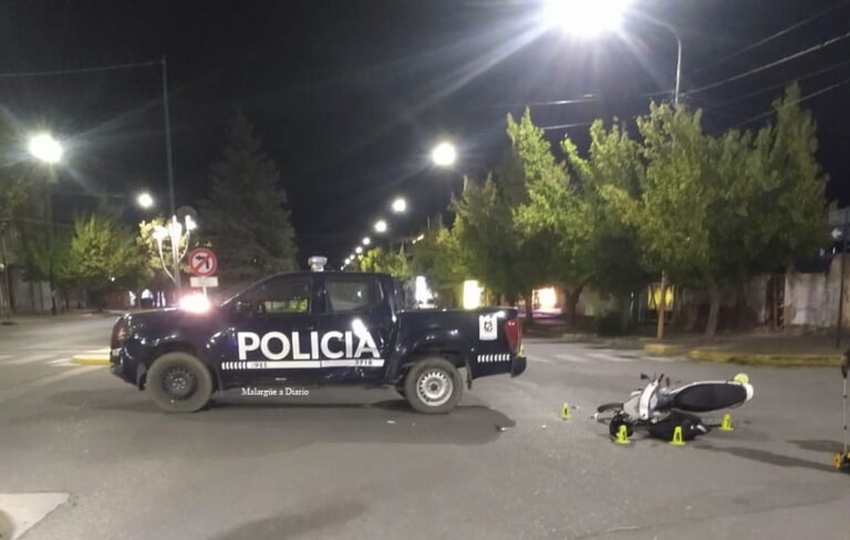 Anoche, antes de las 23, se registró un siniestro vial en la intersección de Avenida San Martín y Saturnino Torres. Allí una moto colisionó a un móvil de la policía.