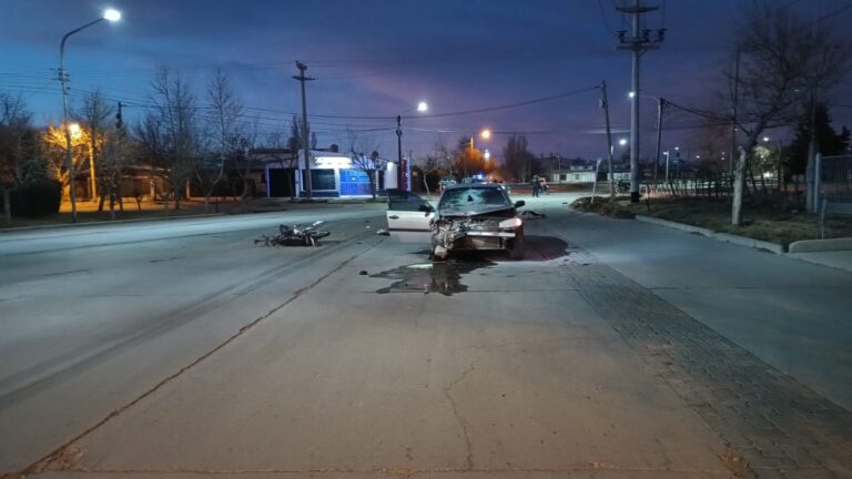 Esta mañana, antes de las 8, se registró un fuerte choque en la intersección de Maza y Fuerte el Alamito con Los Choiqueros. Los vehículos que participaron del siniestro son un Renault Mega y una moto 110cc.