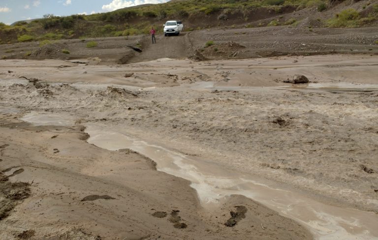 Después de la tormenta se originó una crecida y ocasionó un corte en el camino, a la altura del arroyo de Las Ramadas. El agua también corrió por algunos de los caminos.